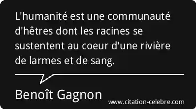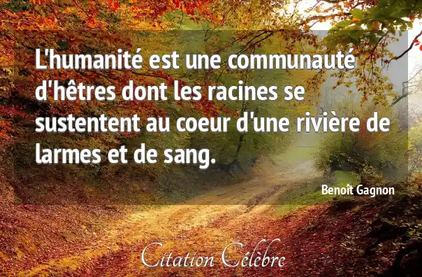 L'humanité est une communauté d'hêtres dont les racines se sustentent au coeur d'une rivière de larmes et de sang.