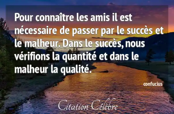 Pour connaître les amis il est nécessaire de passer par le succès et le malheur. Dans le succès, nous vérifions la quantité et dans le malheur la qualité.