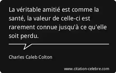 La véritable amitié est comme la santé, la valeur de celle-ci est rarement connue jusqu'à ce qu'elle soit perdu.