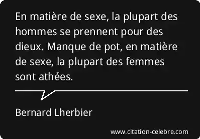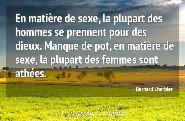 En matière de sexe, la plupart des hommes se prennent pour des dieux. Manque de pot, en matière de sexe, la plupart des femmes sont athées.