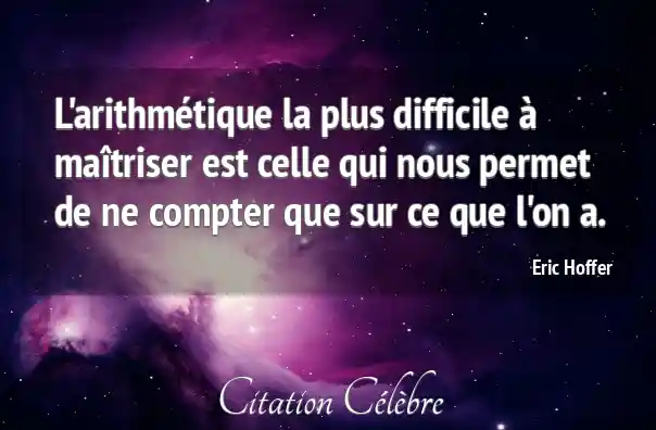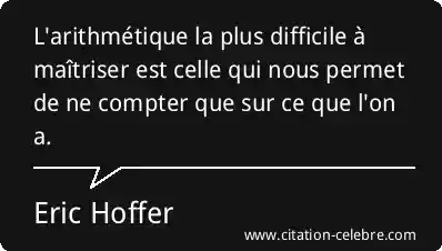 L'arithmétique la plus difficile à maîtriser est celle qui nous permet de ne compter que sur ce que l'on a.