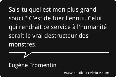 Sais-tu quel est mon plus grand souci ? C'est de tuer l'ennui. Celui qui rendrait ce service à l'humanité serait le vrai destructeur des monstres.