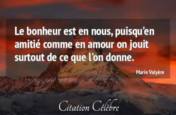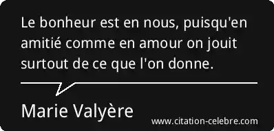 Le bonheur est en nous, puisqu'en amitié comme en amour on jouit surtout de ce que l'on donne.