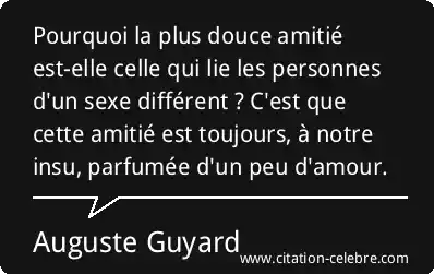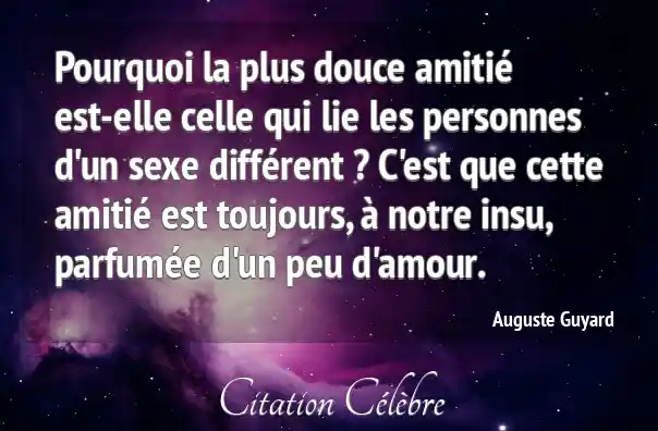 Pourquoi la plus douce amitié est-elle celle qui lie les personnes d'un sexe différent ? C'est que cette amitié est toujours, à notre insu, parfumée d'un peu d'amour.