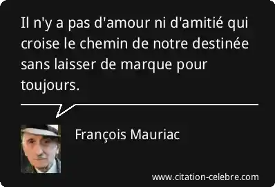Il n'y a pas d'amour ni d'amitié qui croise le chemin de notre destinée sans laisser de marque pour toujours.