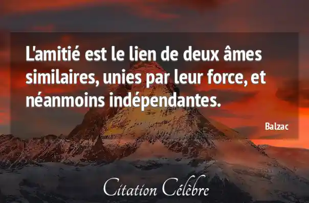 L'amitié est le lien de deux âmes similaires, unies par leur force, et néanmoins indépendantes.