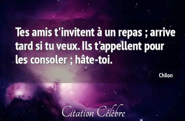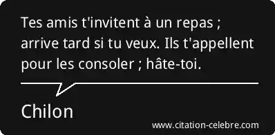 Tes amis t'invitent à un repas ; arrive tard si tu veux. Ils t'appellent pour les consoler ; hâte-toi.