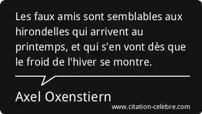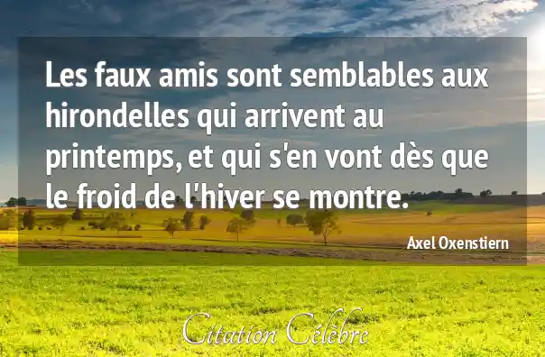 Les faux amis sont semblables aux hirondelles qui arrivent au printemps, et qui s'en vont dès que le froid de l'hiver se montre.