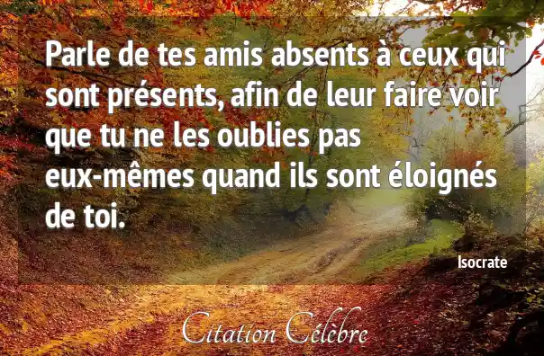 Parle de tes amis absents à ceux qui sont présents, afin de leur faire voir que tu ne les oublies pas eux-mêmes quand ils sont éloignés de toi.