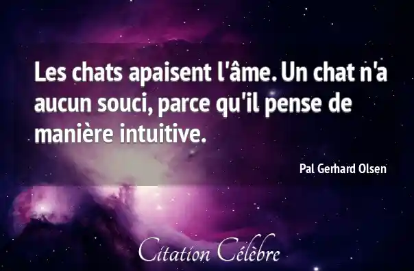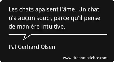 Les chats apaisent l'âme. Un chat n'a aucun souci, parce qu'il pense de manière intuitive.
