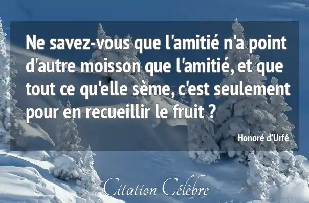 Ne savez-vous que l'amitié n'a point d'autre moisson que l'amitié, et que tout ce qu'elle sème, c'est seulement pour en recueillir le fruit ?