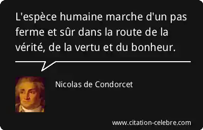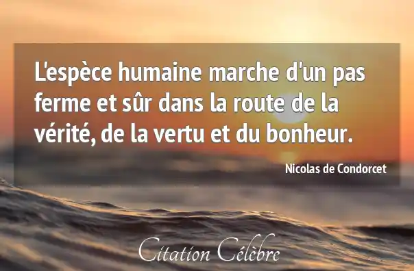 L'espèce humaine marche d'un pas ferme et sûr dans la route de la vérité, de la vertu et du bonheur.