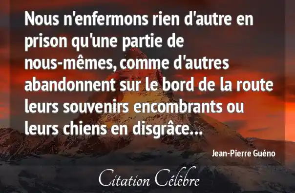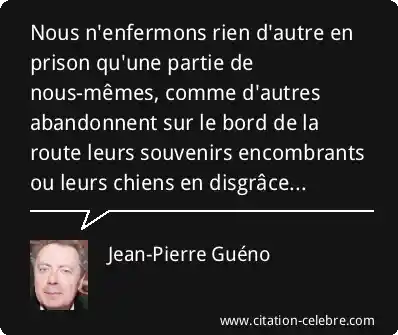 Nous n'enfermons rien d'autre en prison qu'une partie de nous-mêmes, comme d'autres abandonnent sur le bord de la route leurs souvenirs encombrants ou leurs chiens en disgrâce...