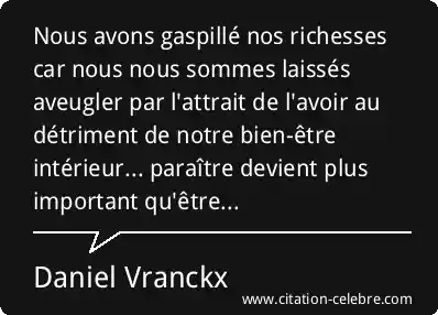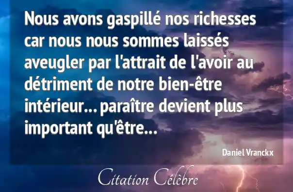 Nous avons gaspillé nos richesses car nous nous sommes laissés aveugler par l'attrait de l'avoir au détriment de notre bien-être intérieur... paraître devient plus important qu'être...