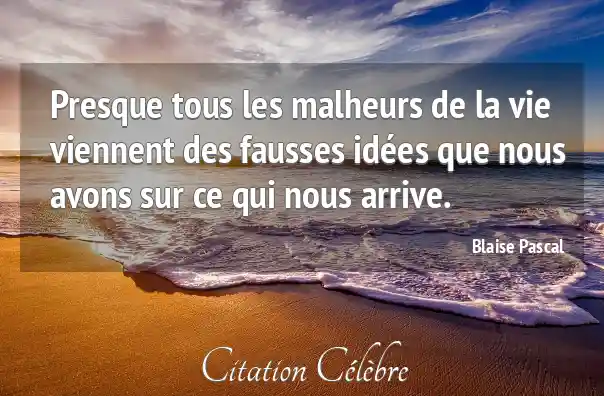 Presque tous les malheurs de la vie viennent des fausses idées que nous avons sur ce qui nous arrive.