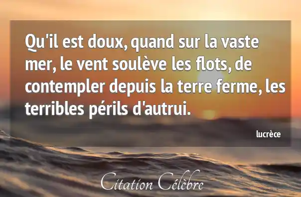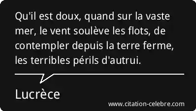 Qu'il est doux, quand sur la vaste mer, le vent soulève les flots, de contempler depuis la terre ferme, les terribles périls d'autrui.