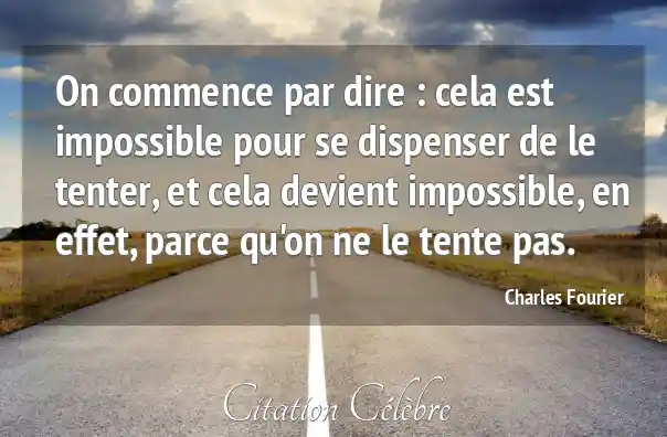 On commence par dire : cela est impossible pour se dispenser de le tenter, et cela devient impossible, en effet, parce qu'on ne le tente pas.