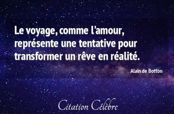 Le voyage, comme l'amour, représente une tentative pour transformer un rêve en réalité.