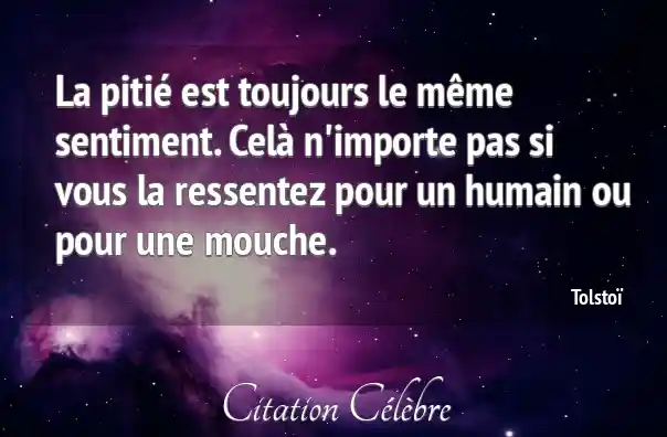 La pitié est toujours le même sentiment. Celà n'importe pas si vous la ressentez pour un humain ou pour une mouche.