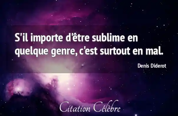 Citation Denis Diderot quelque : S'il importe d'être sublime en quelque genre, c'est surtout en...