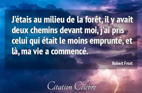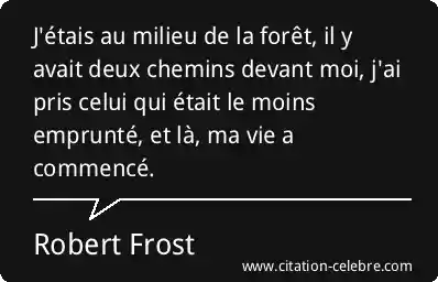 J'étais au milieu de la forêt, il y avait deux chemins devant moi, j'ai pris celui qui était le moins emprunté, et là, ma vie a commencé.
