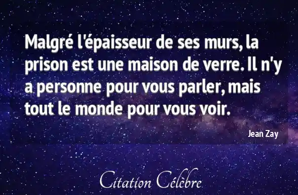Malgré l'épaisseur de ses murs, la prison est une maison de verre. Il n'y a personne pour vous parler, mais tout le monde pour vous voir.