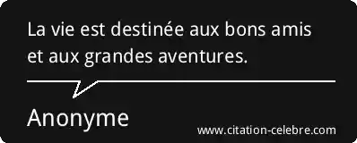 La vie est destinée aux bons amis et aux grandes aventures.