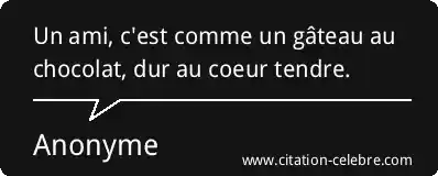 Un ami, c'est comme un gâteau au chocolat, dur au coeur tendre.
