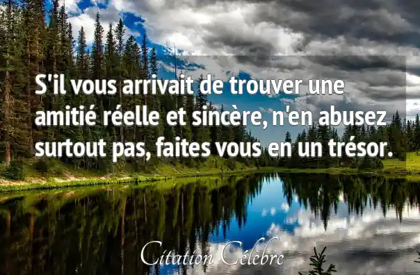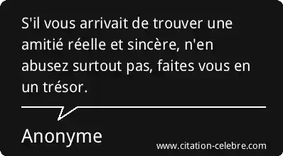 S'il vous arrivait de trouver une amitié réelle et sincère, n'en abusez surtout pas, faites vous en un trésor.
