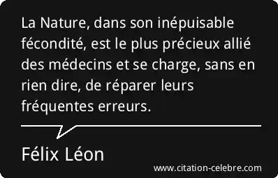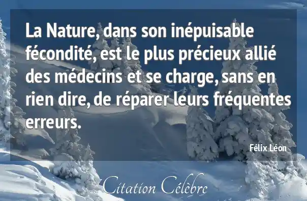 La Nature, dans son inépuisable fécondité, est le plus précieux allié des médecins et se charge, sans en rien dire, de réparer leurs fréquentes erreurs.