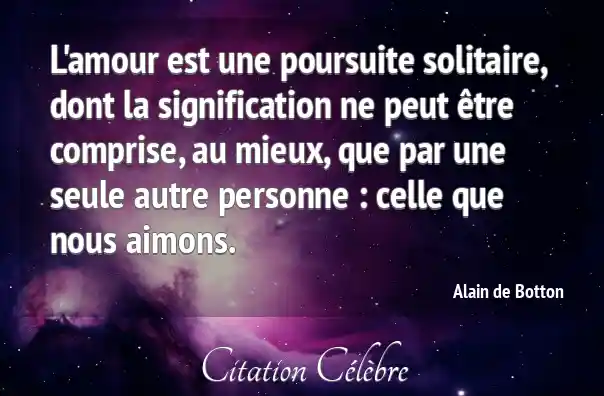 L'amour est une poursuite solitaire, dont la signification ne peut être comprise, au mieux, que par une seule autre personne : celle que nous aimons.