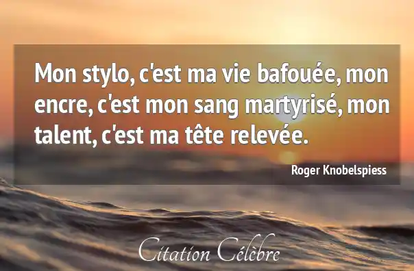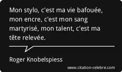 Mon stylo, c'est ma vie bafouée, mon encre, c'est mon sang martyrisé, mon talent, c'est ma tête relevée.