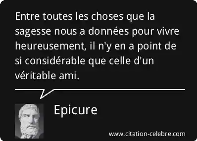 Entre toutes les choses que la sagesse nous a données pour vivre heureusement, il n'y en a point de si considérable que celle d'un véritable ami.