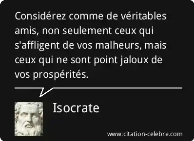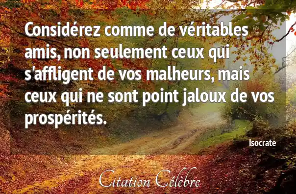 Considérez comme de véritables amis, non seulement ceux qui s'affligent de vos malheurs, mais ceux qui ne sont point jaloux de vos prospérités.