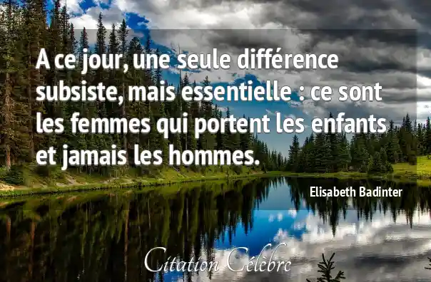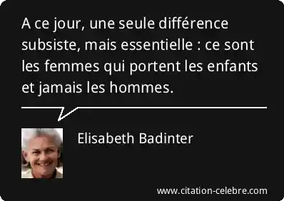 A ce jour, une seule différence subsiste, mais essentielle : ce sont les femmes qui portent les enfants et jamais les hommes.