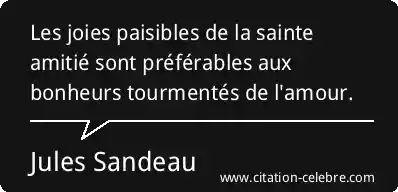 Les joies paisibles de la sainte amitié sont préférables aux bonheurs tourmentés de l'amour.