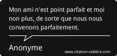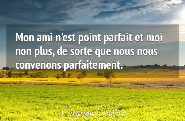 Mon ami n'est point parfait et moi non plus, de sorte que nous nous convenons parfaitement.