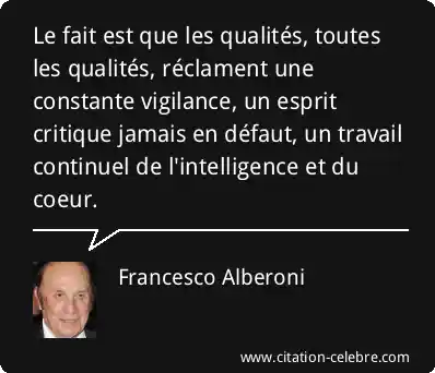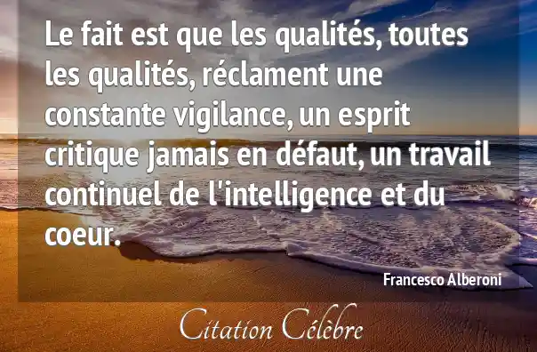 Le fait est que les qualités, toutes les qualités, réclament une constante vigilance, un esprit critique jamais en défaut, un travail continuel de l'intelligence et du coeur.