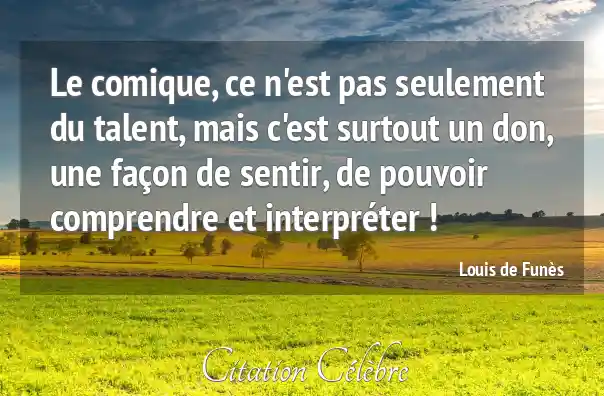 Le comique, ce n'est pas seulement du talent, mais c'est surtout un don, une façon de sentir, de pouvoir comprendre et interpréter !