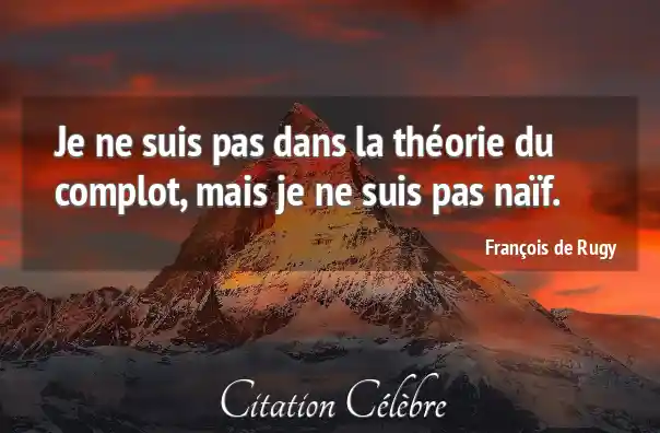 Je ne suis pas dans la théorie du complot, mais je ne suis pas naïf.