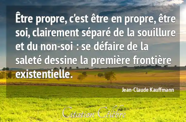 Être propre, c'est être en propre, être soi, clairement séparé de la souillure et du non-soi : se défaire de la saleté dessine la première frontière existentielle.