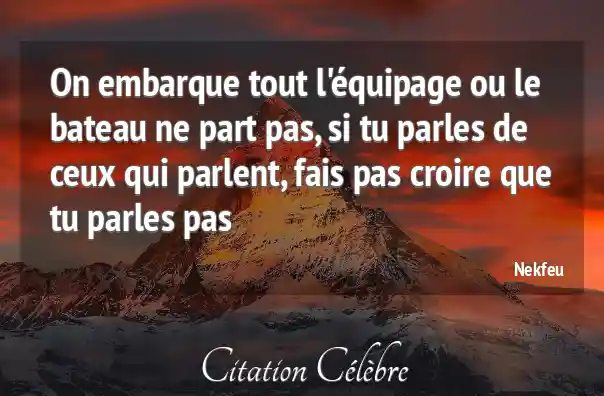 On embarque tout l'équipage ou le bateau ne part pas, si tu parles de ceux qui parlent, fais pas croire que tu parles pas