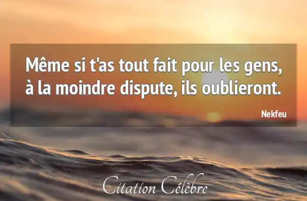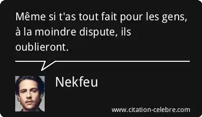 Même si t'as tout fait pour les gens, à la moindre dispute, ils oublieront.