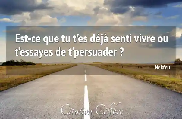 Est-ce que tu t'es déjà senti vivre ou t'essayes de t'persuader ?