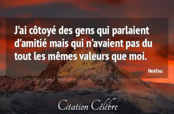 J'ai côtoyé des gens qui parlaient d'amitié mais qui n'avaient pas du tout les mêmes valeurs que moi.