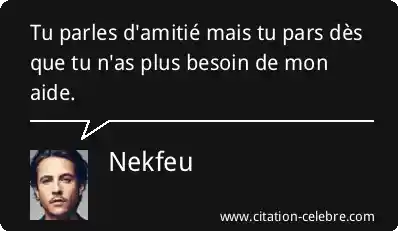 Tu parles d'amitié mais tu pars dès que tu n'as plus besoin de mon aide.
