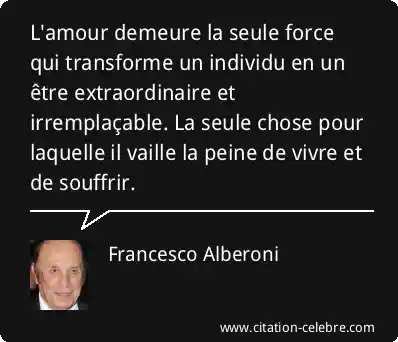 L'amour demeure la seule force qui transforme un individu en un être extraordinaire et irremplaçable. La seule chose pour laquelle il vaille la peine de vivre et de souffrir.