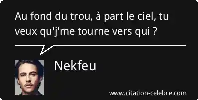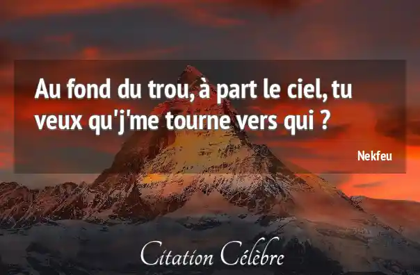 Au fond du trou, à part le ciel, tu veux qu'j'me tourne vers qui ?