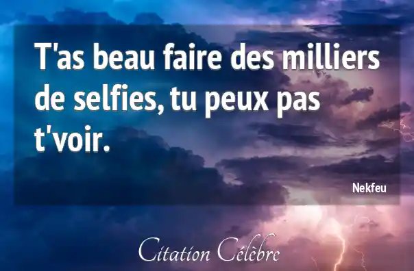 T'as beau faire des milliers de selfies, tu peux pas t'voir.