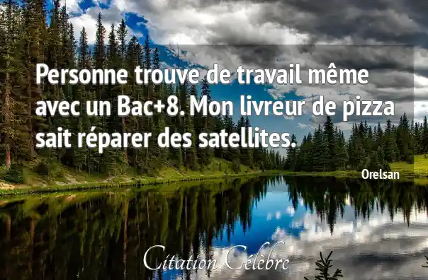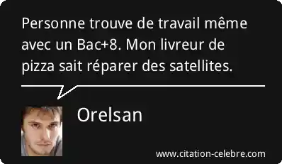 Personne trouve de travail même avec un Bac+8. Mon livreur de pizza sait réparer des satellites.